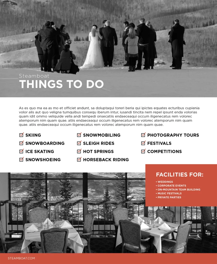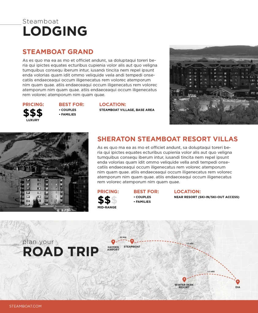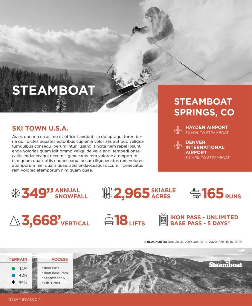 A selection of pages I designed for the Alterra Mountain Company Destination Guide (Winter 2019), featuring custom iconography and map treatments throughout.