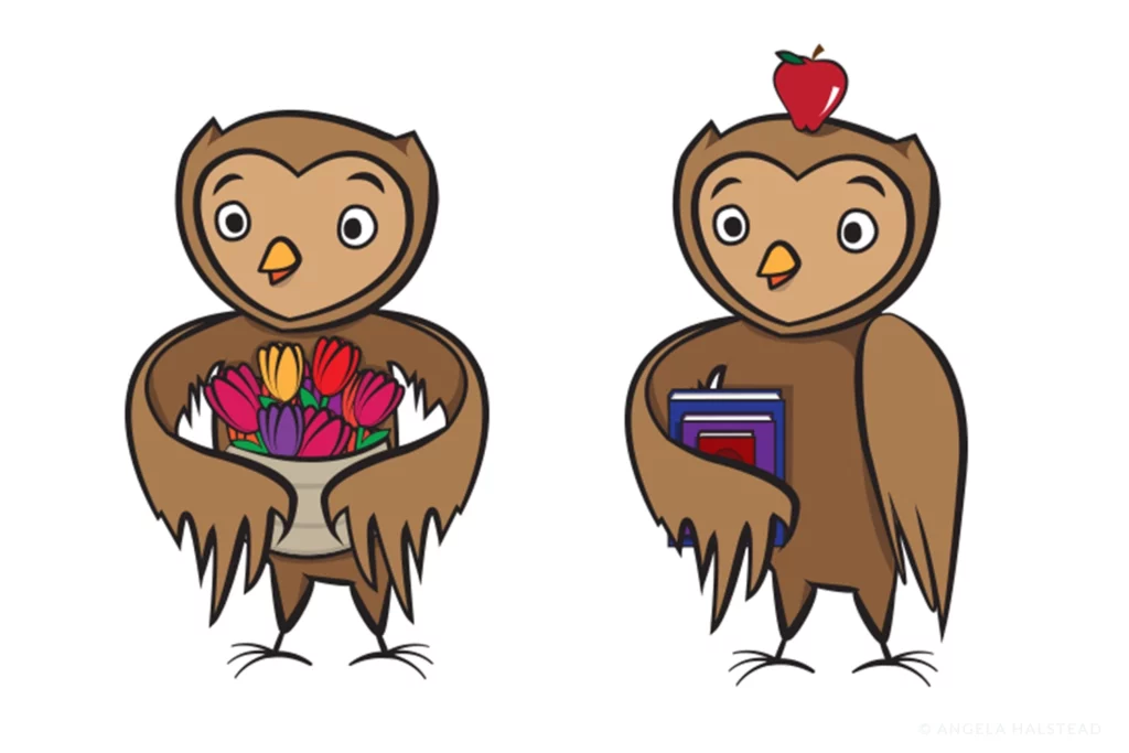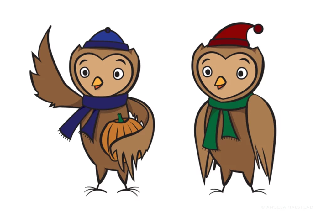 This is Ollie the Owl, a mascot I designed and illustrated for use in seasonal print and web materials.